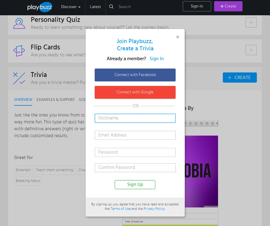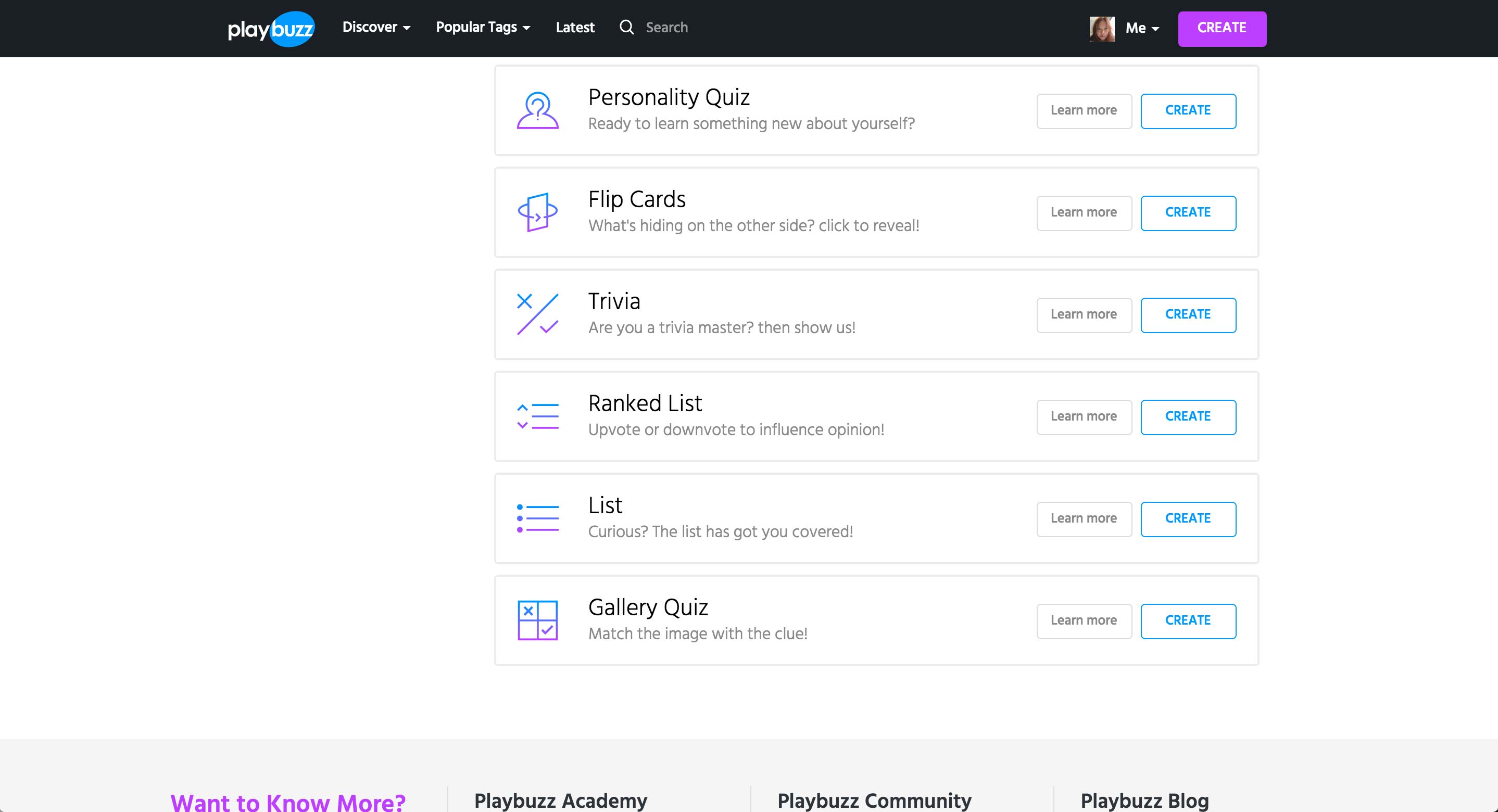 Официальная страница сайта Playbuzz.com, платформы, позволяющей создавать интересный, интерактивный и информативный контент.