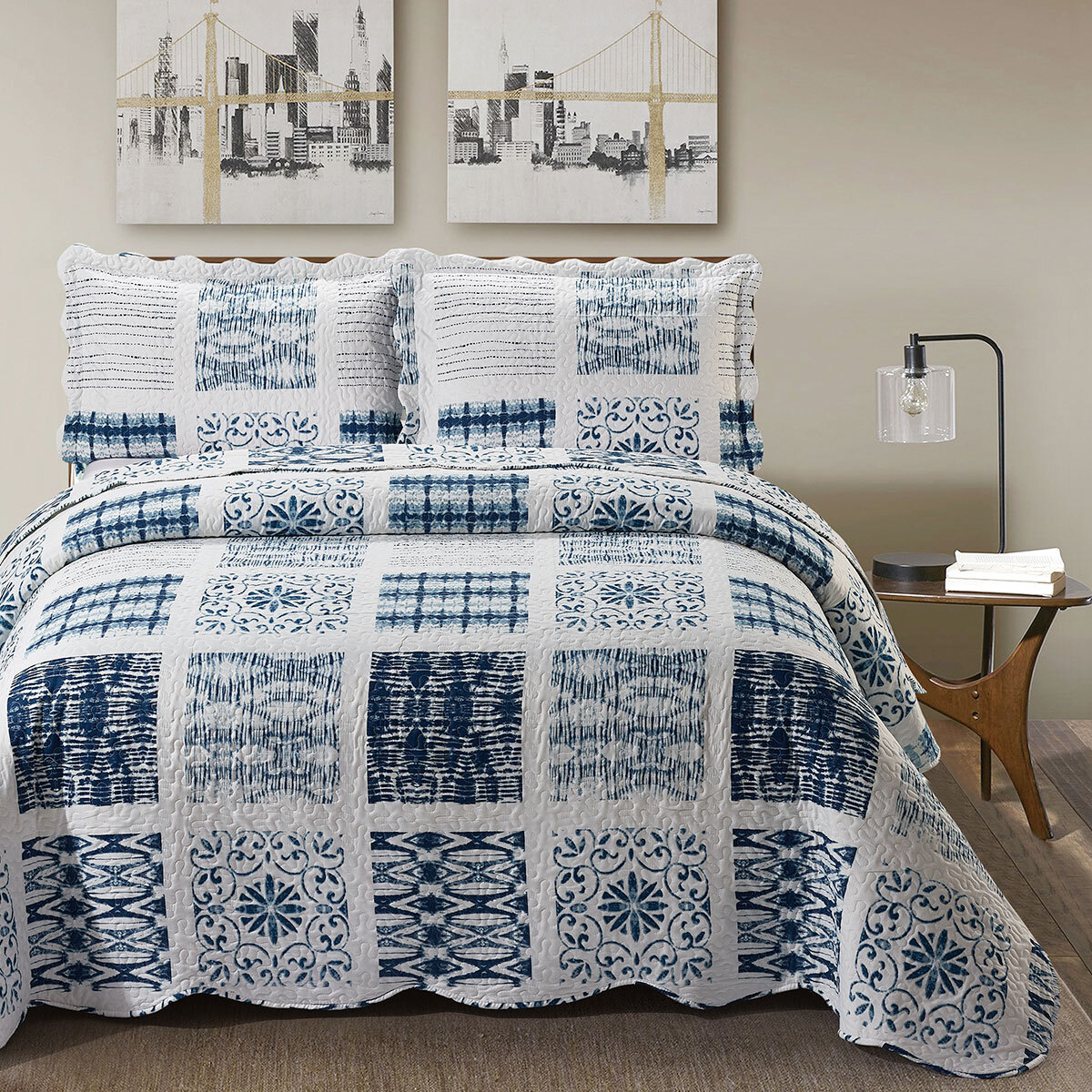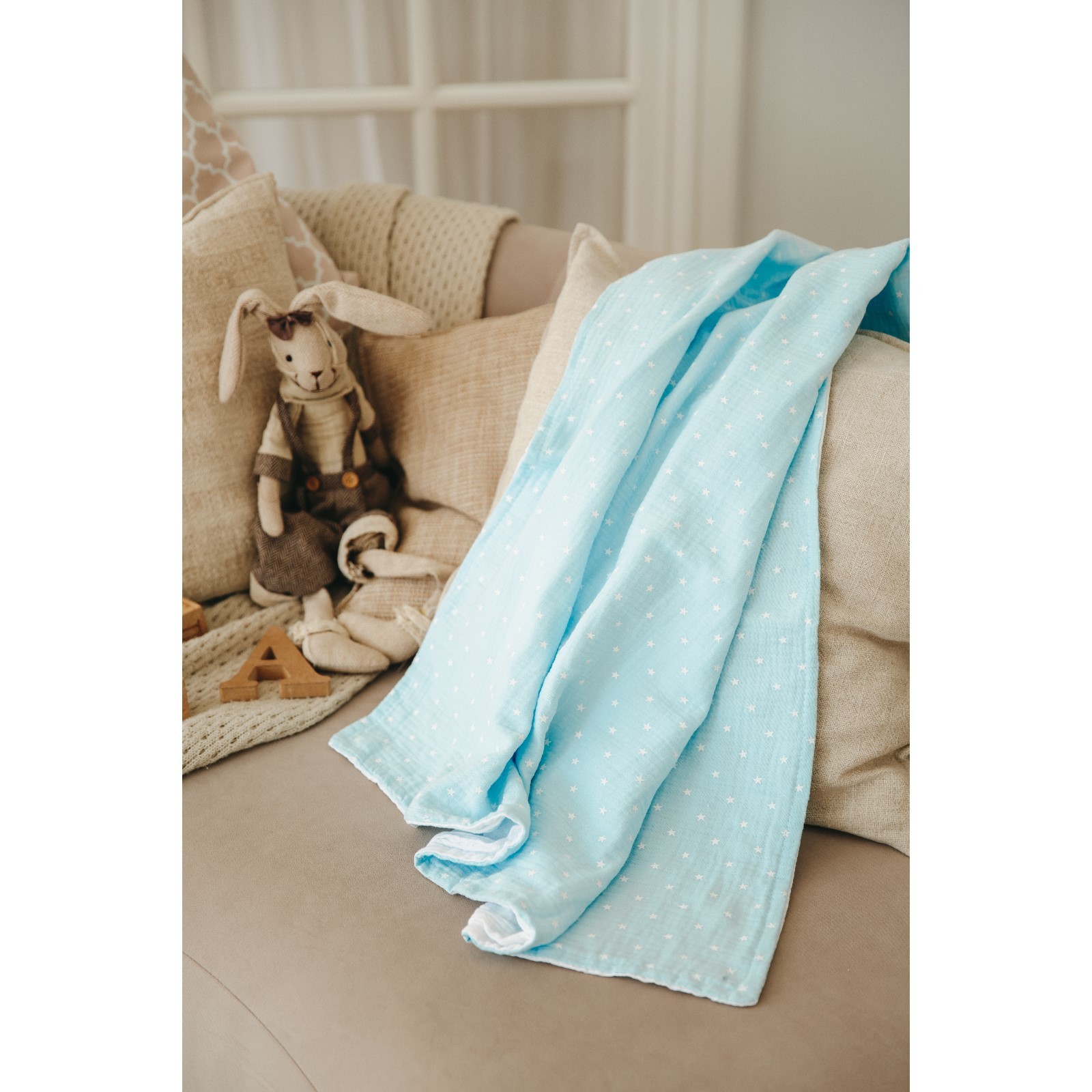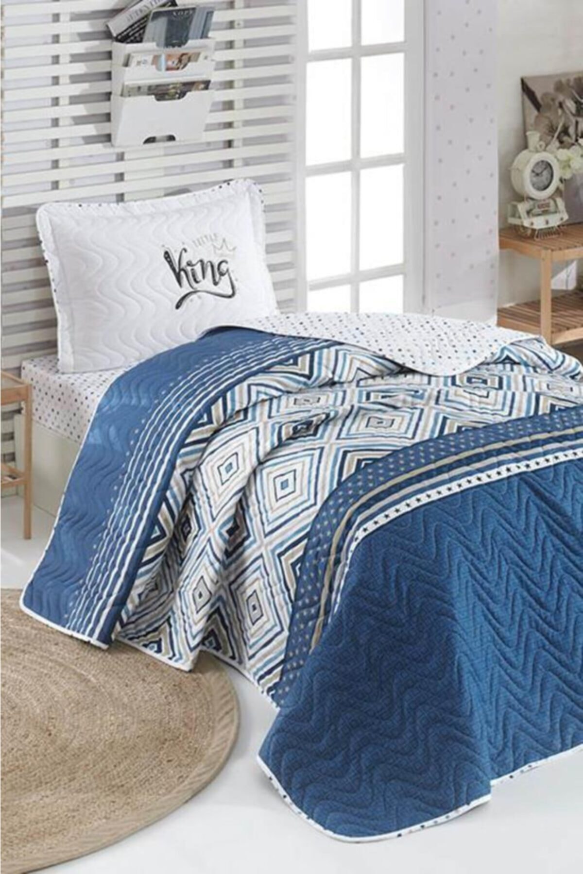 Плед бело синий