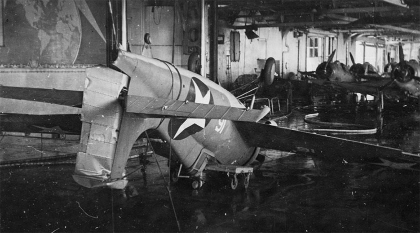 Ещё одной проблемой были сами самолёты. Кроме неоспоримого плюса – складывающиеся плоскости позволили нарастить численность палубных истребительных эскадрилий с 18 до 27 машин – они имели и серьёзные минусы. Из-за дополнительной пары пулемётов сильно уменьшился как общий боекомплект, так и боекомплект на ствол – с 450 патронов (34 секунды огня) до 240 патронов (18 секунд). Но ещё хуже обстояло с лётными характеристиками. Из-за серьёзно увеличившегося веса машины её и так не выдающаяся скороподъёмность упала до 457 м/мин – уже вдвое меньше, чем у «Зеро», а боевой радиус сократился до совершенно неприличных для морского истребителя 105 миль [195 км].