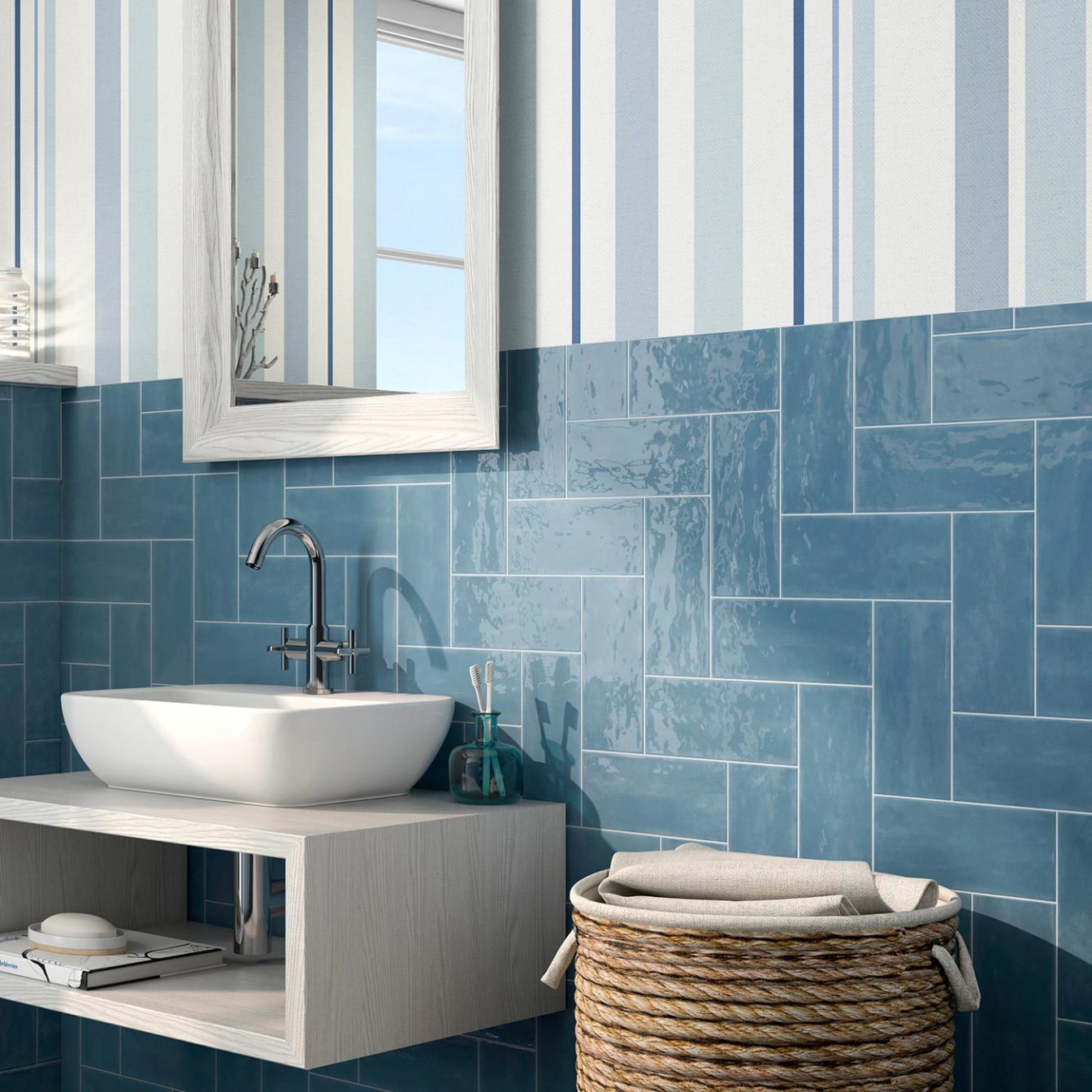 Плитка Блю Шеврон В Интерьере Ванной Фото