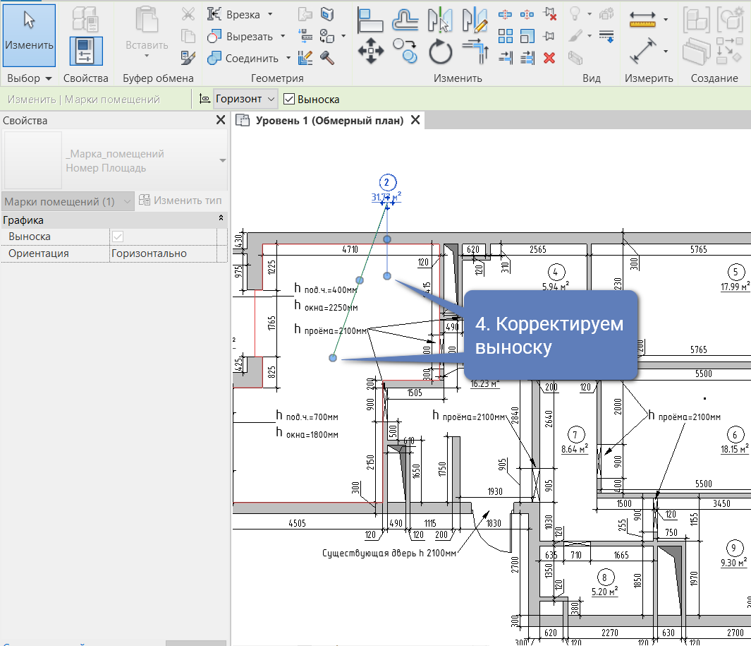 Площадь помещения в ревите