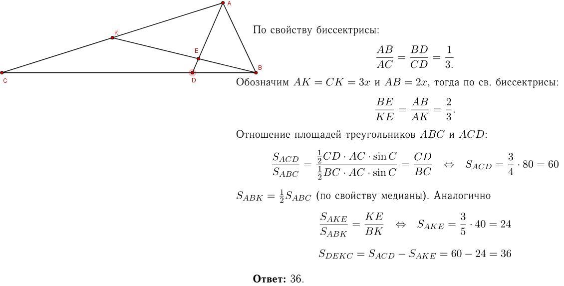Площадь треугольника abc равно 80