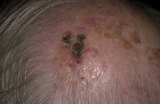 Плоскоклеточный рак (другое название - сквамозно-клеточная карцинома) - опухоль, отличающаяся сильным ростом и активным развитием метастазов . Она встречается реже, чем базалиома .