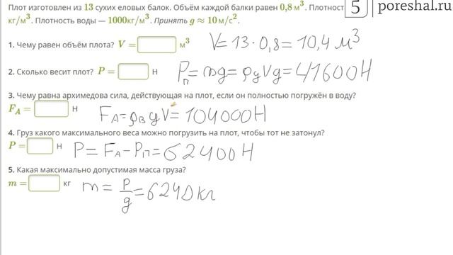 Плот массой 800 кг