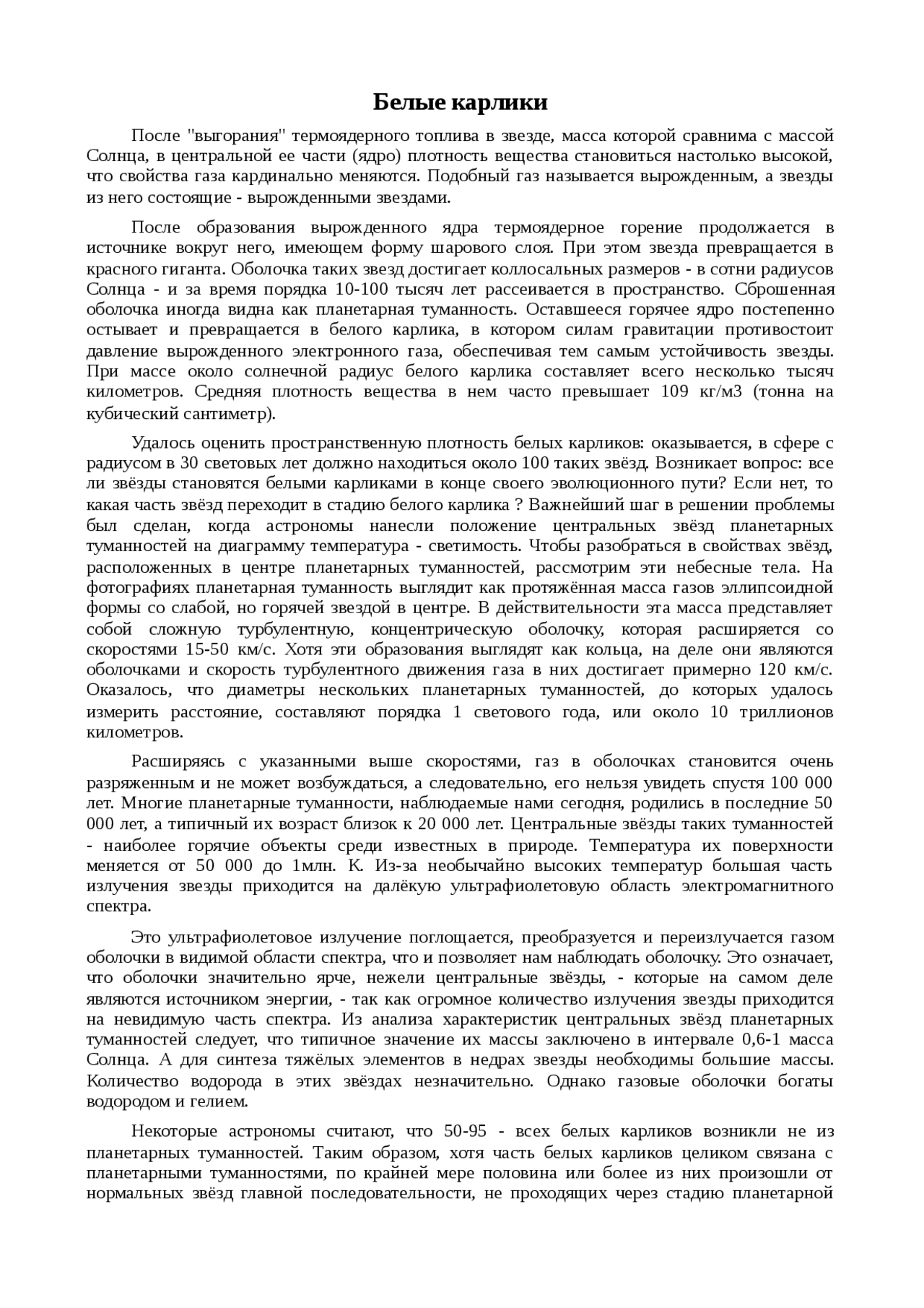 Плотность карликов