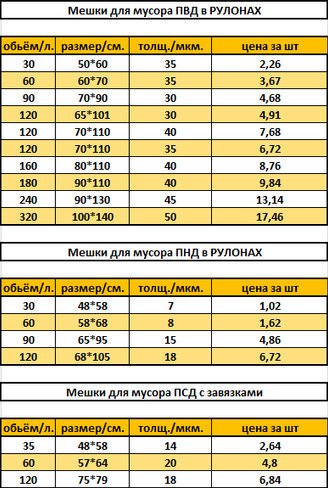 Плотность мусорных пакетов