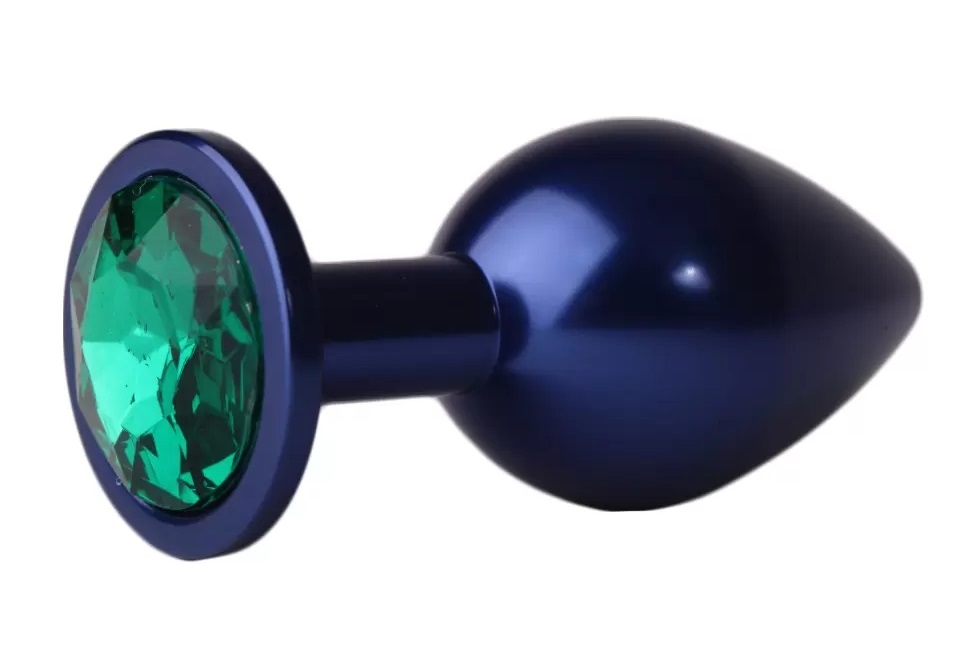 Plug anal bleu avec strass vert 7,6 cm
