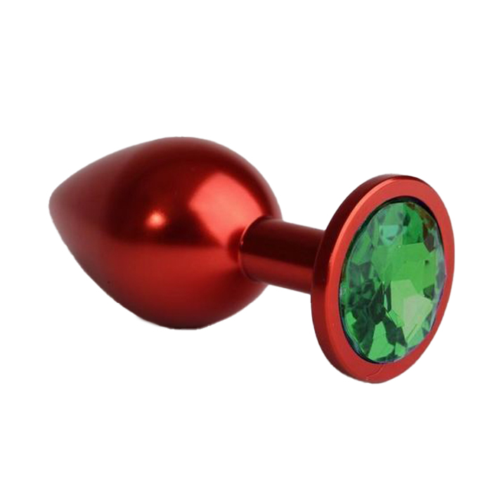 Plug anal rouge avec strass vert 7,6 cm