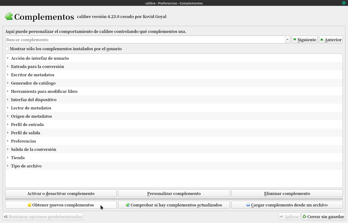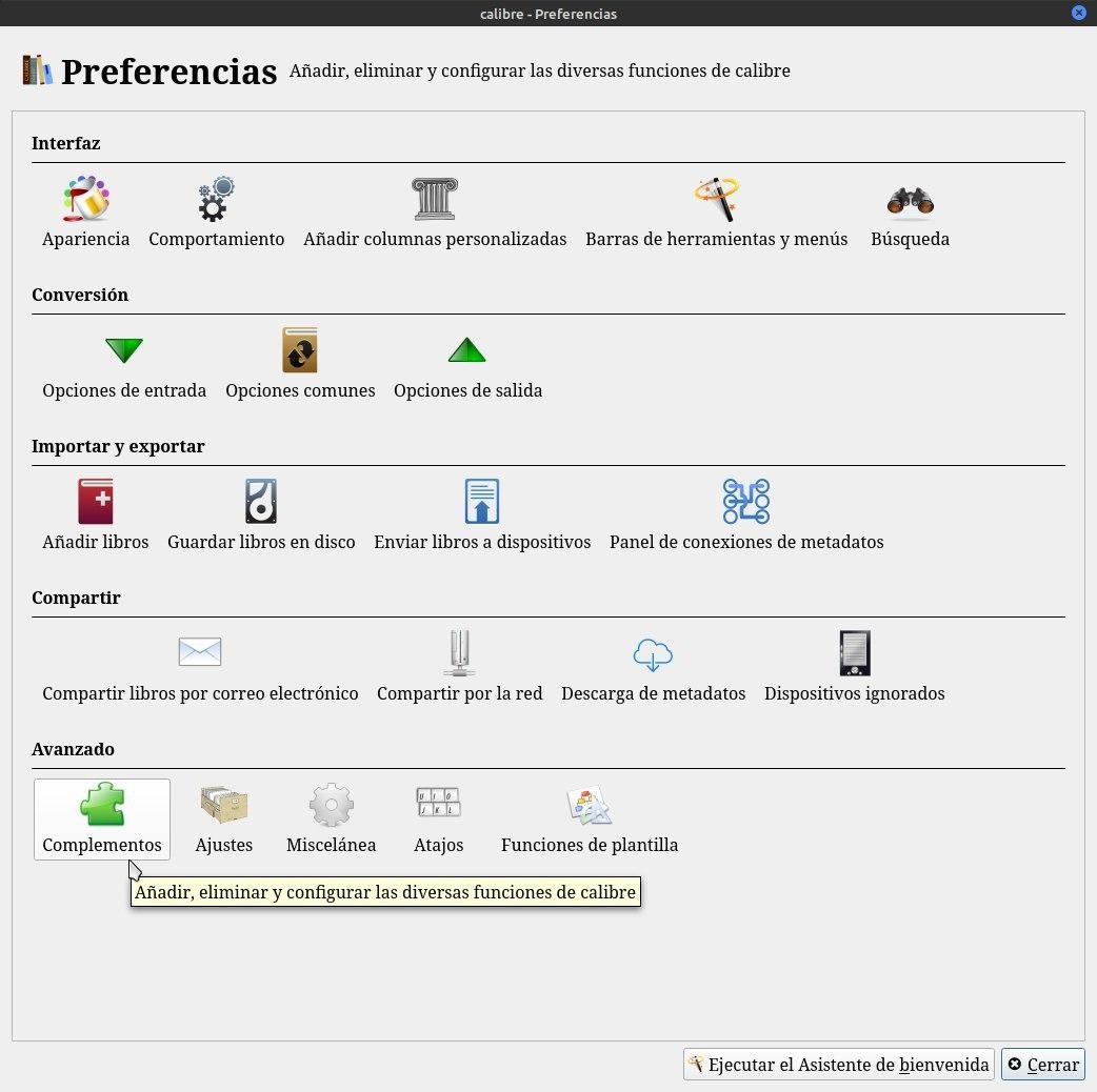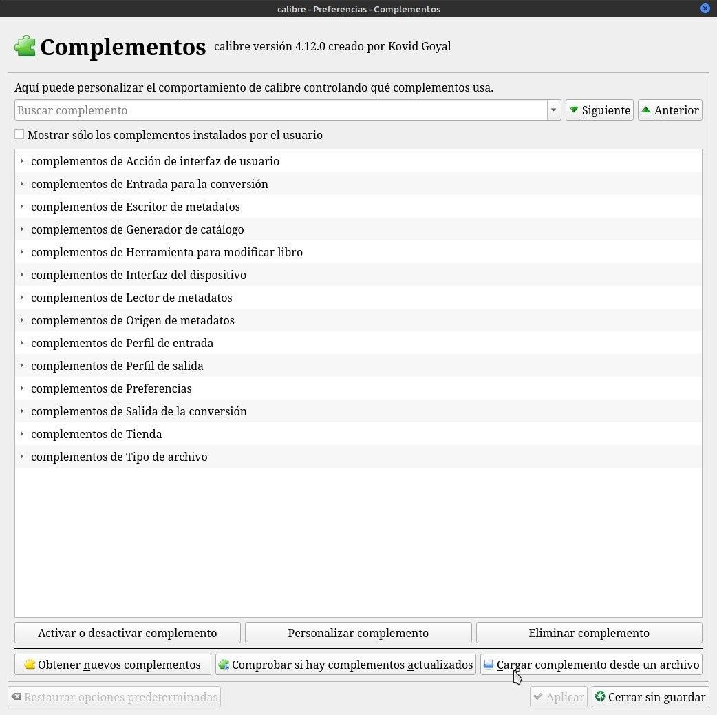La otra es conociendo el nombre del complemento. Vamos a Preferencias /Complementos