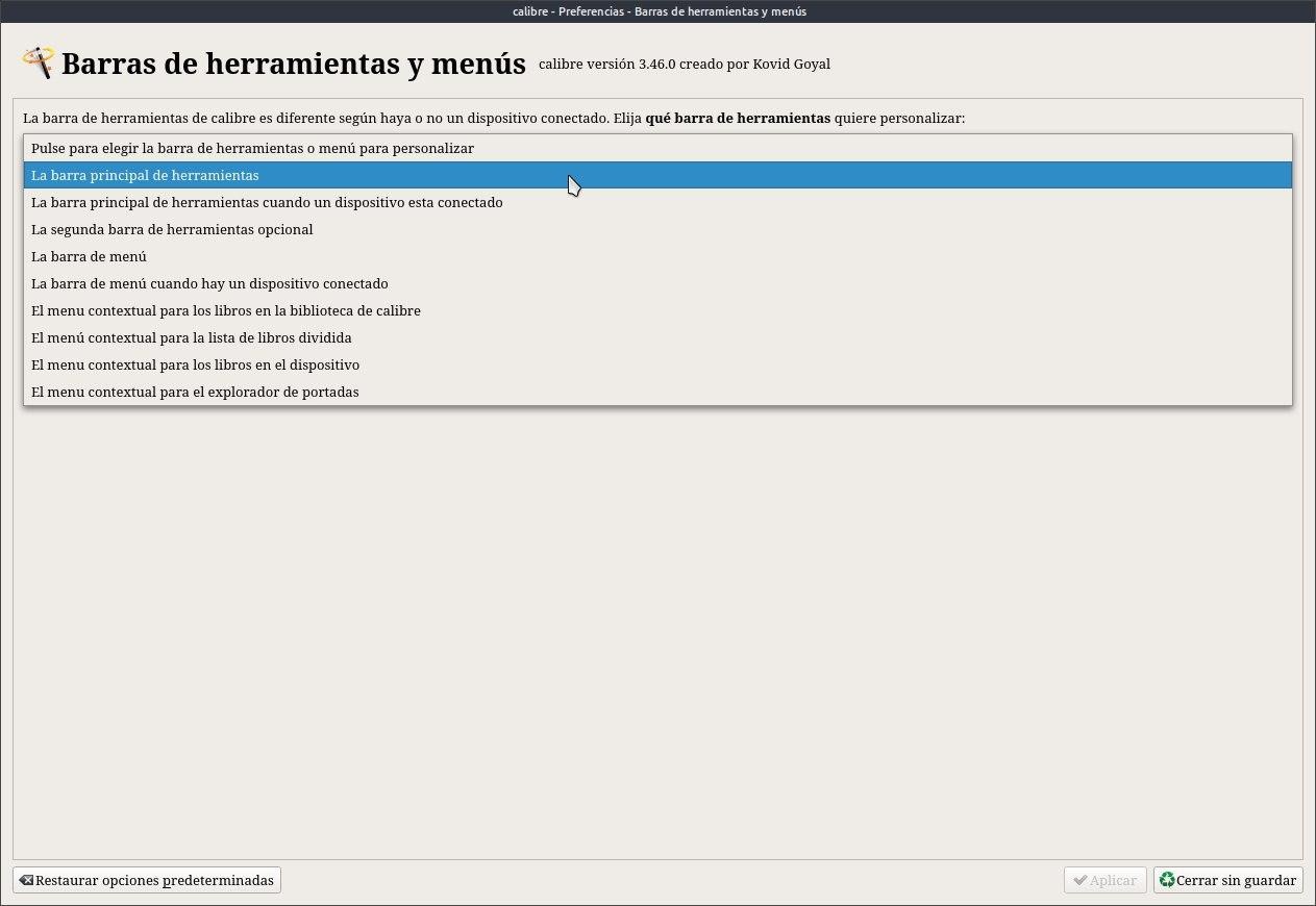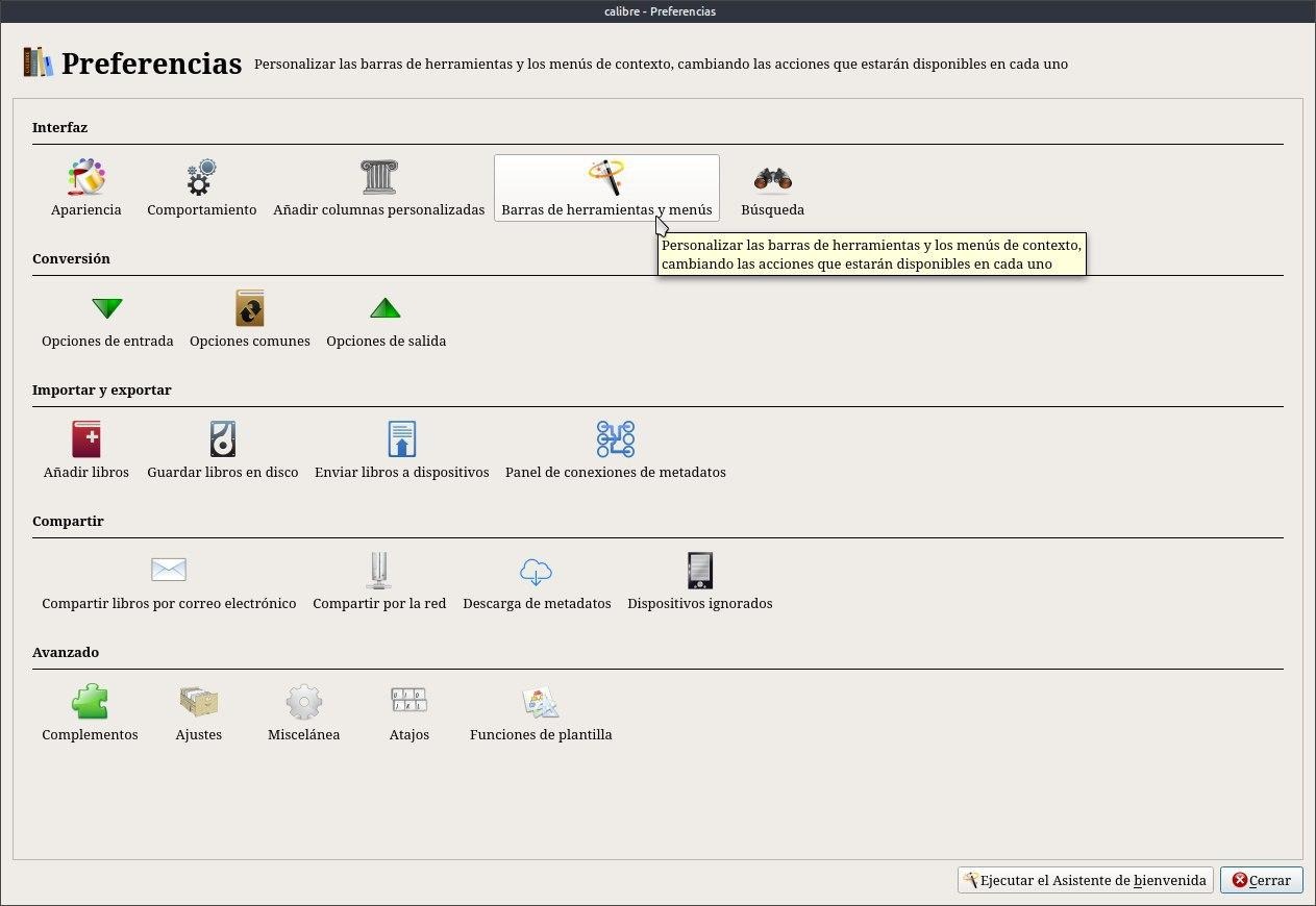 Debemos ir a Preferencias / barra de herramientas y menú.