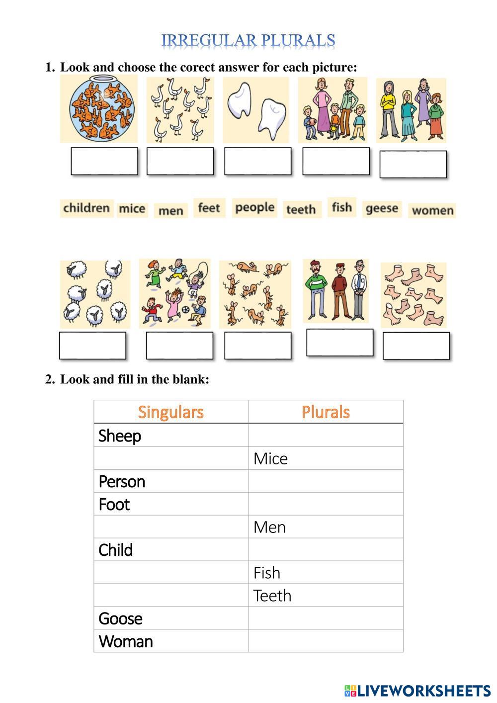 Plural forms of nouns exercises