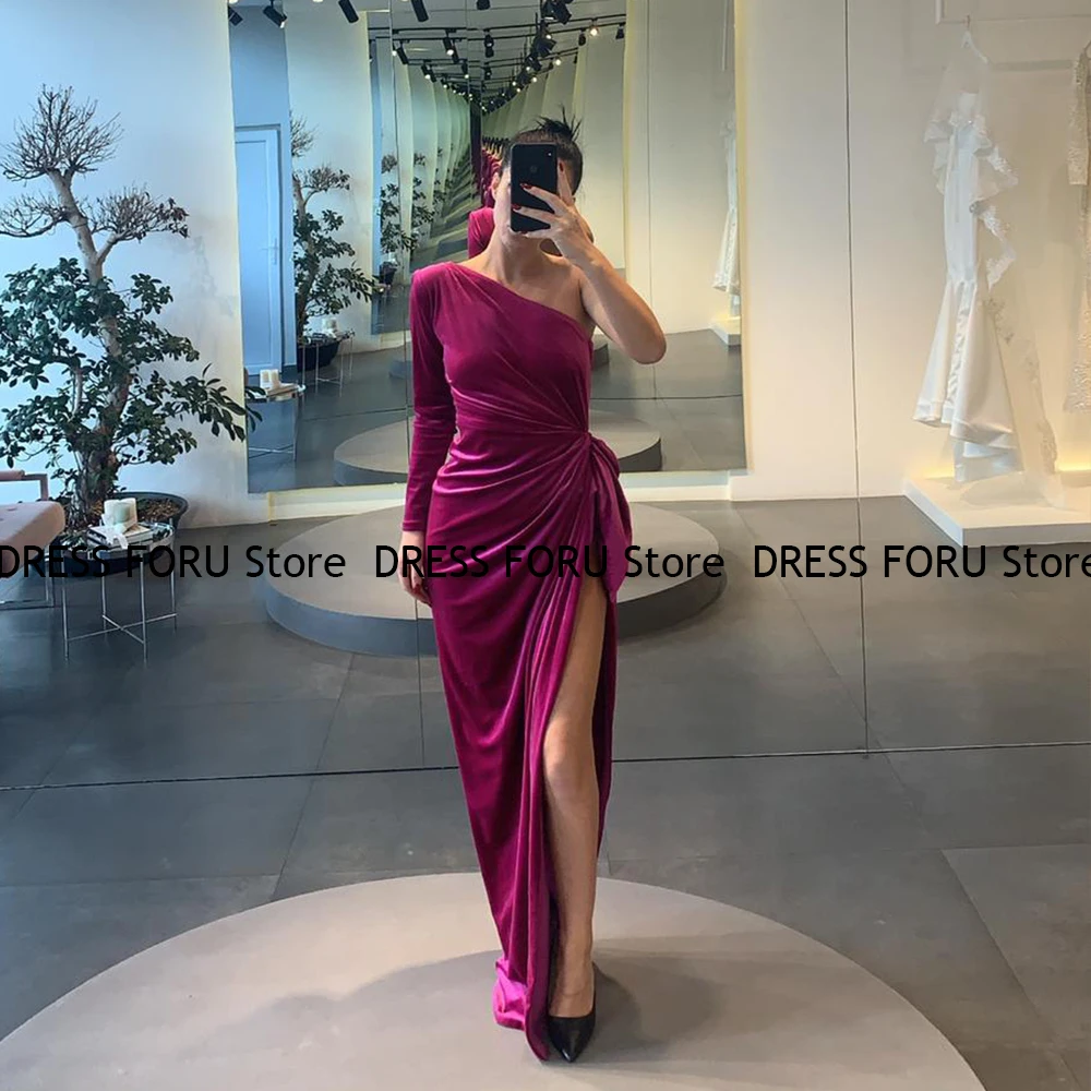 "Pmwrun Asymmetrical Velour Evening Dress For Woman One Shoulder High Slit Floor Length Prom Gala Gown Formal Wedding Party 2023" * Buy Now Just For 85$