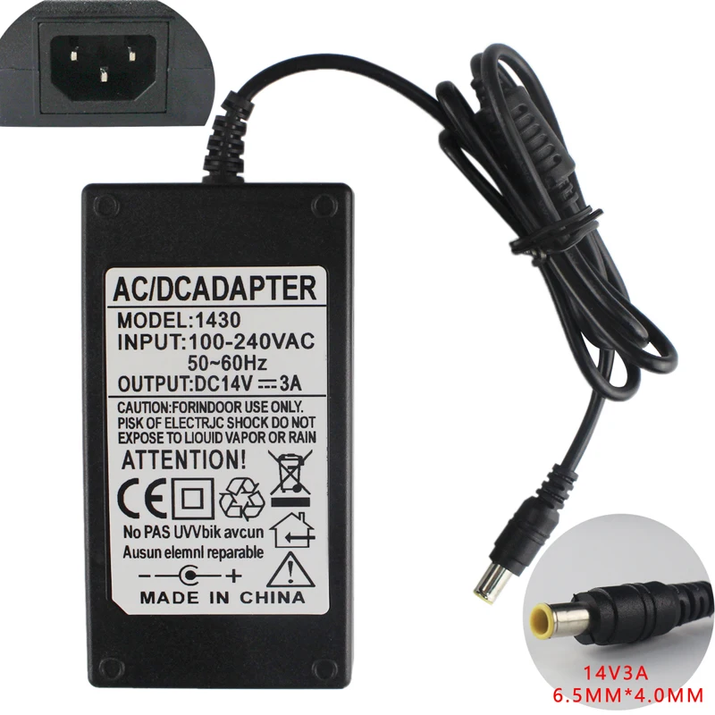 Блок питания AD-3014B, AD-4214L, AP04214-UV для монитора и телевизора Dell, Samsung . 3A, 14V, 42W, разъем круглый 6,5 x 4,5 mm с ножкой в центре, цвет черный, гарантия 12 мес . Изготовитель Sino Power, Китай .