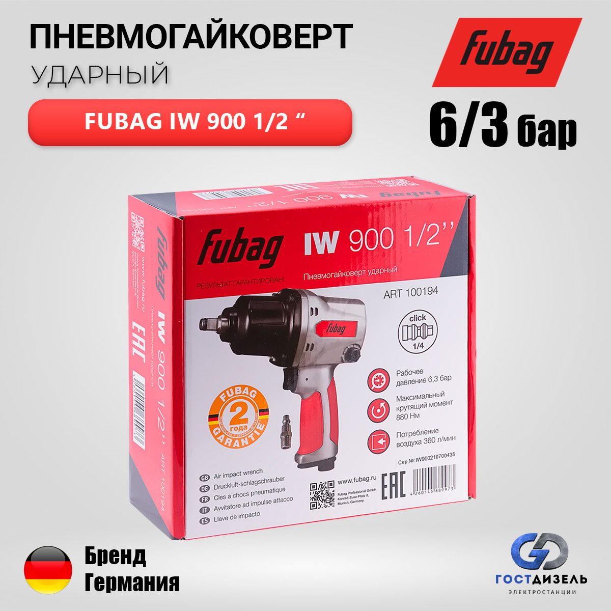Пневмогайковерт ударный fubag iw900 136 фото