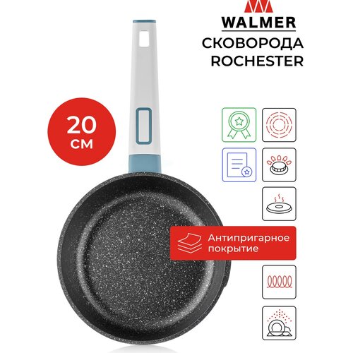 Les poêles à frire sont rarement à la mode, mais la nouvelle série Rochester de la célèbre société britannique WALMER en est un exemple. La partie extérieure du corps est peinte dans une couleur bleue inhabituelle pour cette batterie de cuisine et est décorée d'un logo moulé massif. WALMER Rochester - des poêles à frire pour des cuisines stylées ! Leur corps est en fonte d'aluminium, le côté est renforcé et les parois sont deux fois plus épaisses, et le fond a une épaisseur accrue de 4,5 mm. Cela signifie qu'ils chaufferont uniformément et progressivement, ce qui est extrêmement important pour le goût des plats. Les parois hautes et droites rendent la poêle spacieuse, ce qui permet de remuer et de retourner facilement les ingrédients. À propos, cela doit être fait avec des spatules en plastique ou en bois afin de ne pas rayer la surface. Les poêles à frire WALMER Rochester sont : Corps en fonte d'aluminium durable avec côtés renforcés et fond épaissi, ce qui garantit une résistance maximale et un chauffage rapide ; -couche de revêtement antiadhésif Greblon C2 Marble, qui empêche les aliments de brûler et de coller et rend le lavage de la poêle facile et rapide ; Manche ergonomique en bakélite avec revêtement soft-touch, qui ne chauffe pas et permet de cuisiner confortablement ; La poignée est équipée d'un trou, ce qui permet de suspendre la vaisselle à un crochet, ce qui permet d'économiser de l'espace dans la cuisine. Convient à tous les types de feux, y compris l'induction. Attention : avant la première utilisation, vous devez laver la vaisselle. casserole dans de l'eau tiède avec du détergent. Ne nettoyez pas la surface avec des détergents abrasifs. Ne surchauffez pas la poêle à des températures supérieures à 260°C, car cela pourrait endommager le revêtement antiadhésif. La collection WALMER Rochester comprend six variétés de poêles avec une large gamme de diamètres - de 20 à 28 cm de diamètre. La poêle est petite, idéale pour chauffer ou cuire un plat pour une ou deux personnes. La hauteur de ses parois est de 5 cm, l'épaisseur est de 2 mm, le diamètre du fond à induction est de 14 cm - cette poêle produit le brouillage le plus correct. Pour la meilleure matinée de ma vie !