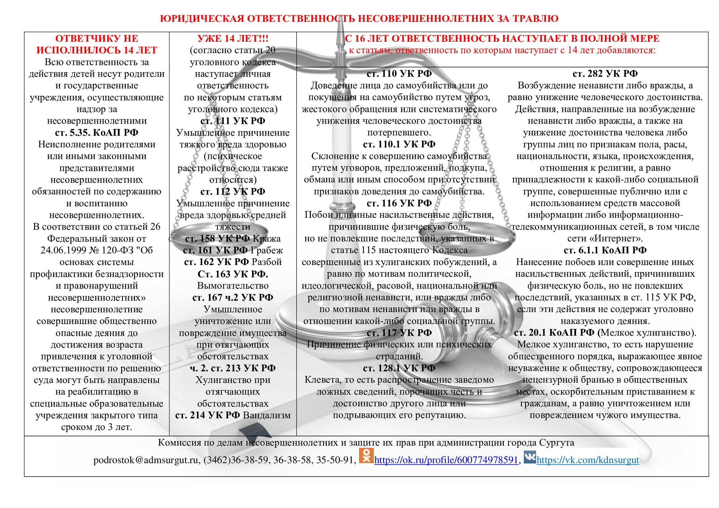 По каким статьям ответственность с 14