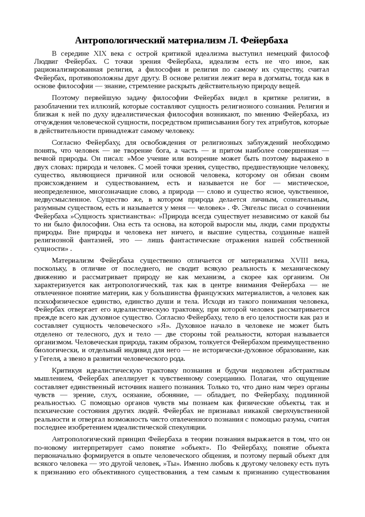 По мнению л фейербаха