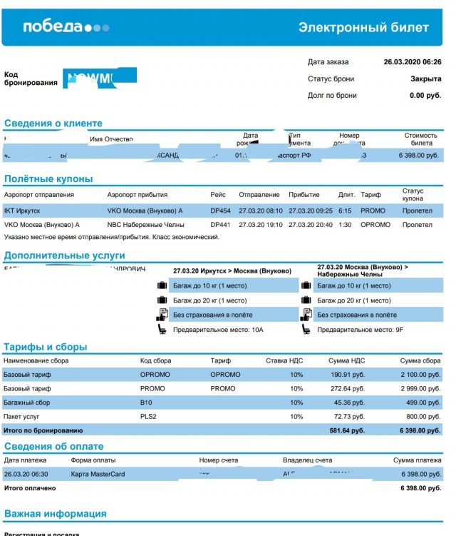 Победа проверить бронирование