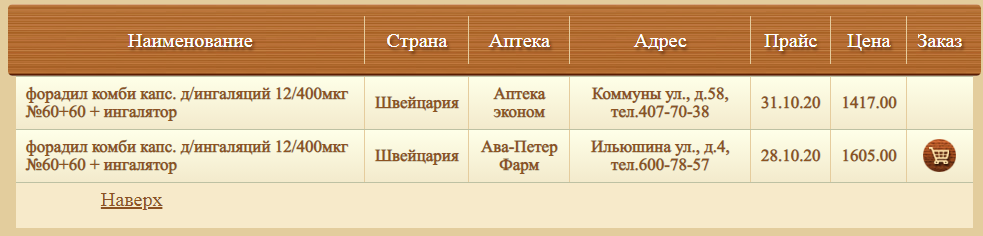 Форадил Комби капс . с пор . д/инг . набор . 4 .8 . 29 отзывов Характеристики 8 вопросов . 1 520 ₽ . Добавить в корзину . К описанию товара . В избранное . Сравнить . Следить за снижением цены .