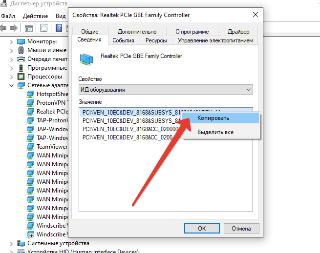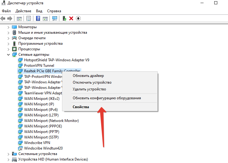 - Нажмите правой кнопкой мыши на «Сетевые адаптеры» и откройте «Свойства».