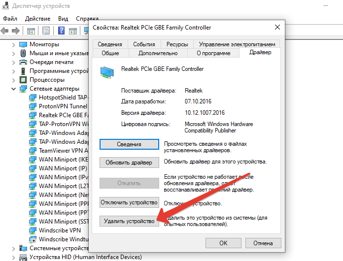 - На вкладке «драйвер» нажмите «удалить устройство».
