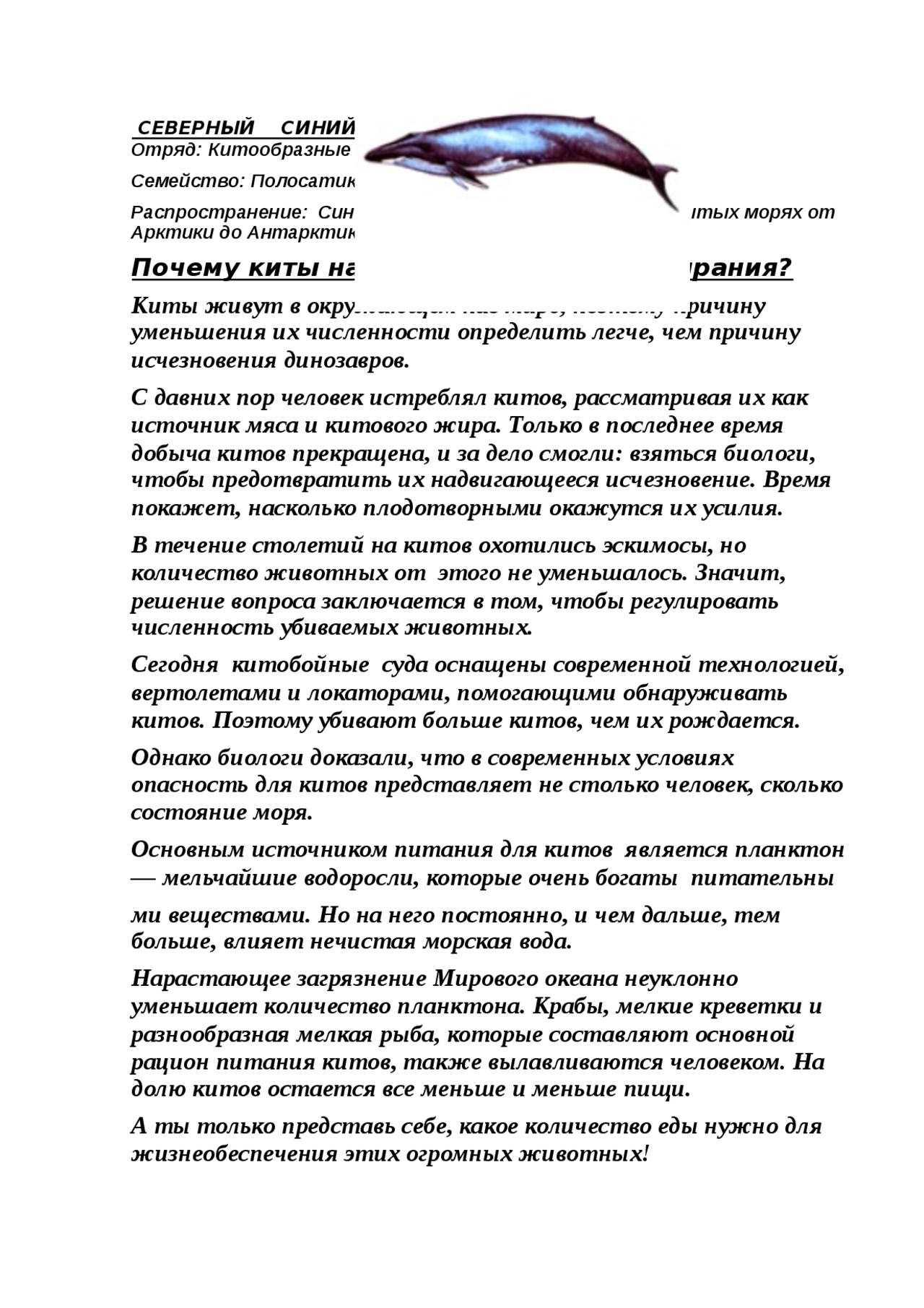 Почему исчезают киты