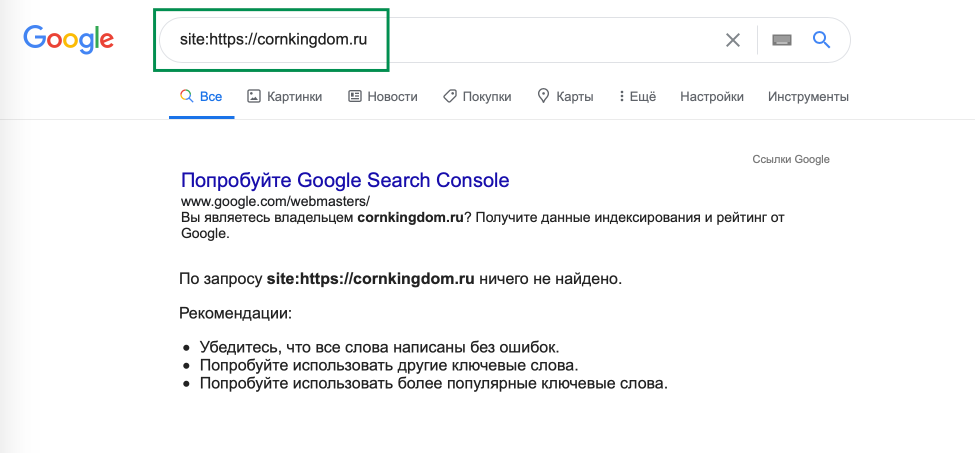 Почему не показывает google