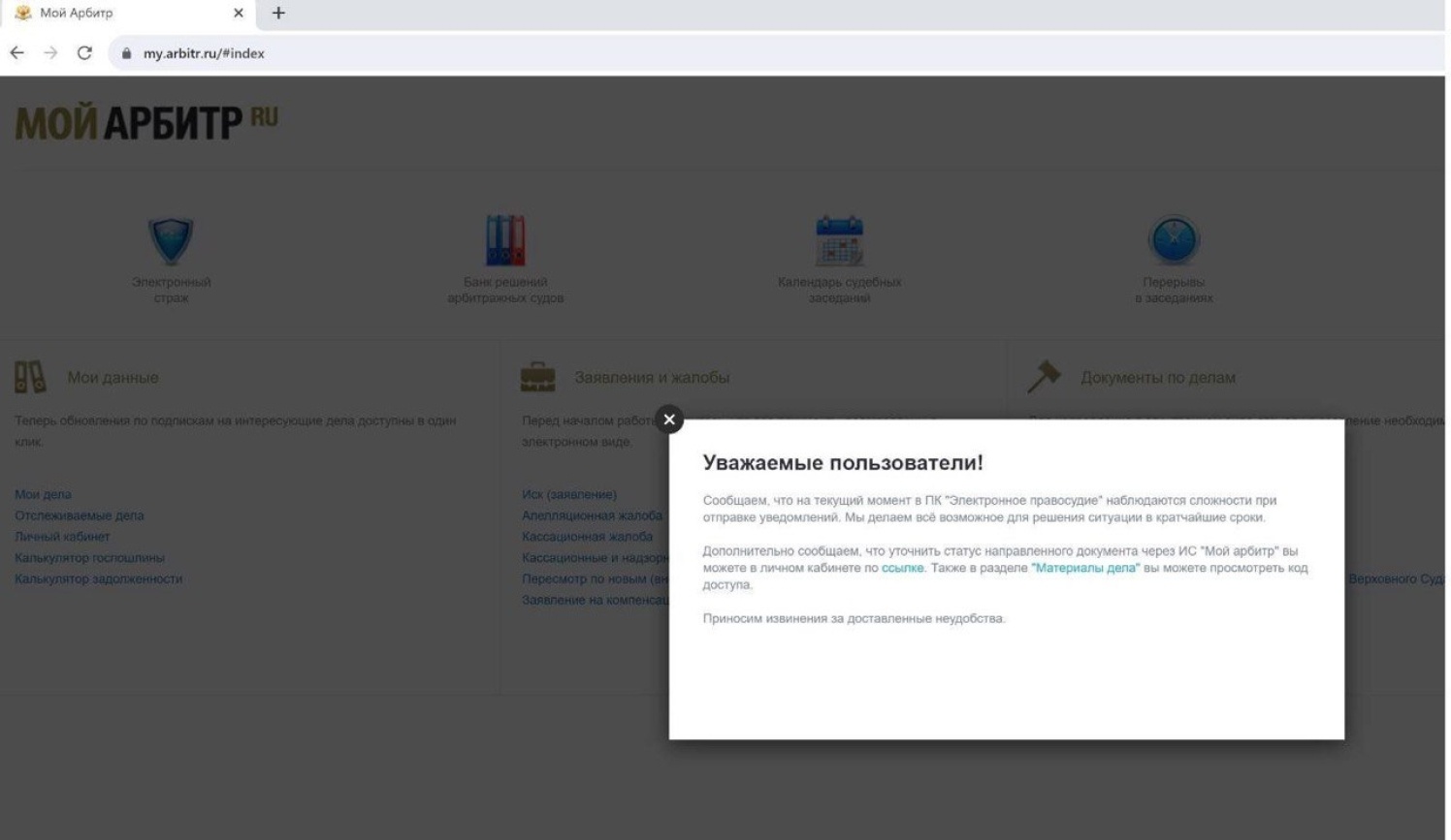 Почему не работают судебные сайты