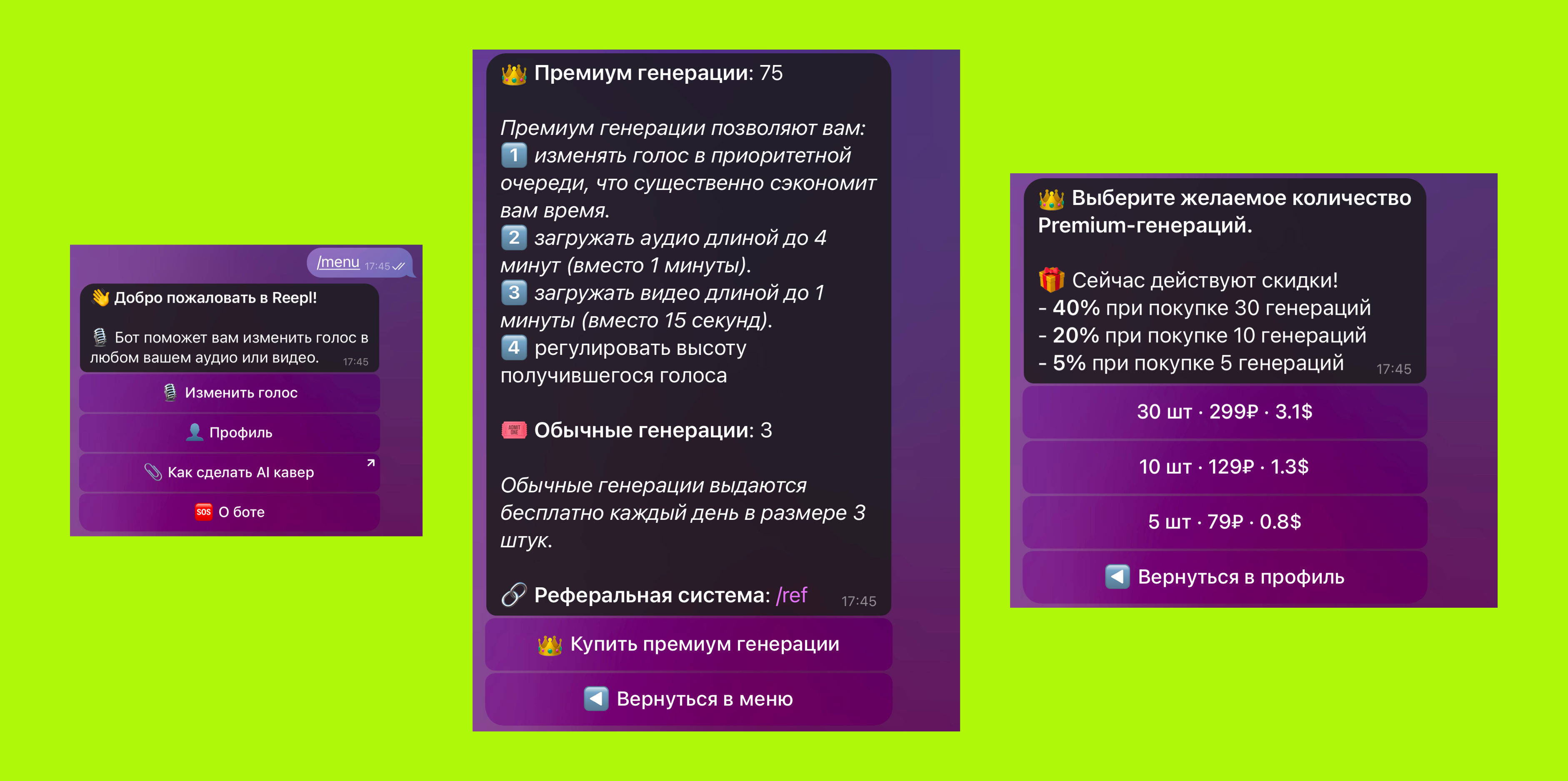 Перейдите в бота -> профиль -> Купить премиум генерации
