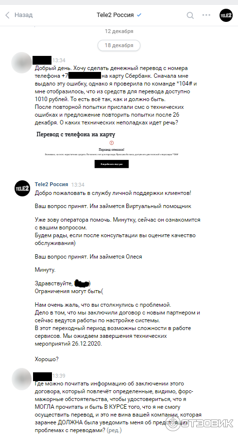Почему теле2 не переводит деньги
