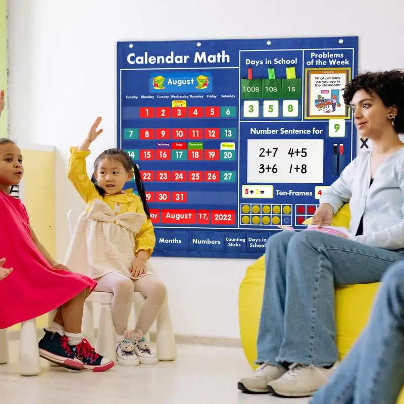 Pocket Chart For Classroom Math Pocket Calendar For Students Colorful Classroom Calendar With Word Cards Activity Cards Reusable - Купить с бесплатной доставкой