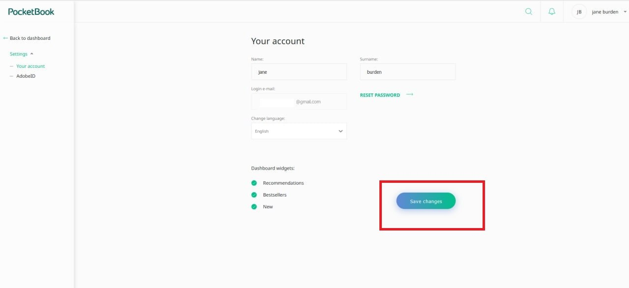 Como indicarle en la web de Pocketbook Cloud, en nuestro ordenador que cuenta de Adobe es la de por defecto.