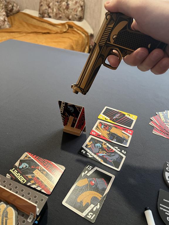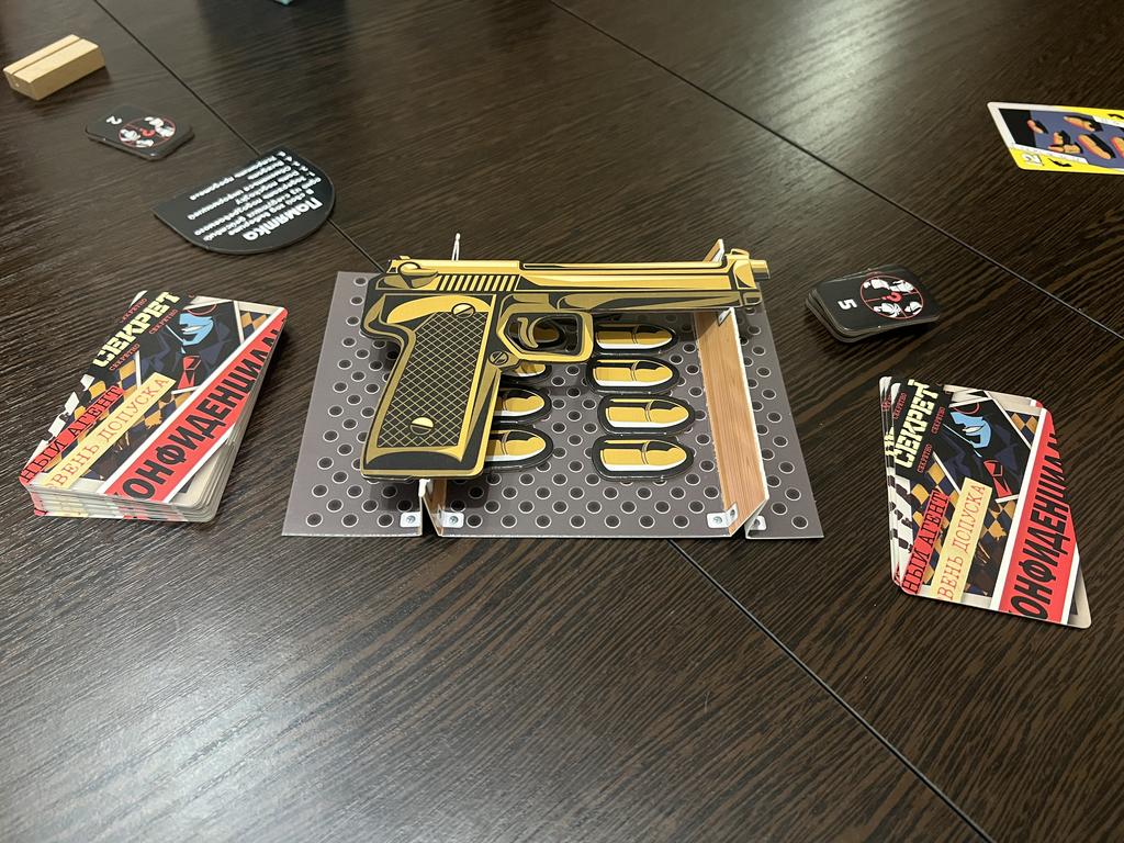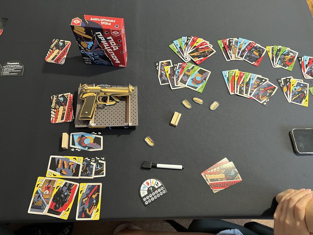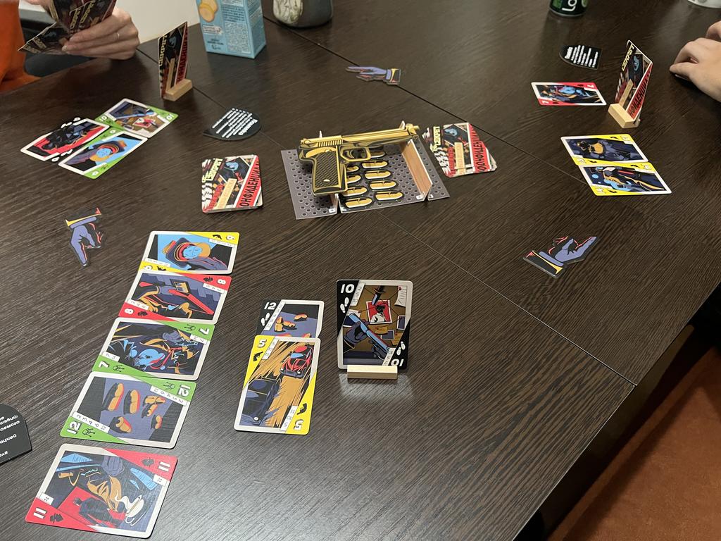 Например, было так, что мне попалось значение 13. Я сказал Свете: «Давай поиграем в твоего предателя». Мы поиграли двумя руками карт в её чувака. Я взял в руки свой Макаров, сделал выстрел. Теперь я должен в качестве вознаграждения за поимку взять любую карту из сброса: беру карту со значением 13 - бинго! Следующим ходом я 100%-но укажу точный вариант.