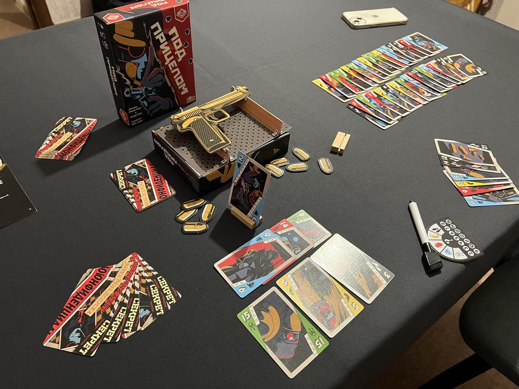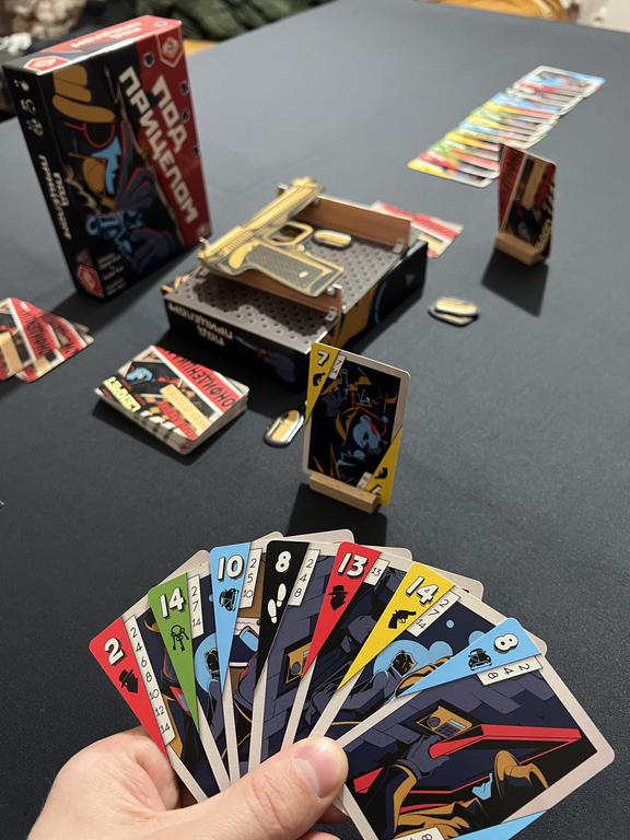 Это важный момент. Большой плюс Под прицелом и её преимущество перед Бомбой в том, что хорошо играется вдвоём и втроём. BGG пишет, что трое - лучший состав. Все партии, кроме трёх специально опробованных партий на троих, я играл вдвоём. Идёт просто отлично. Именно из-за этого мне хотелось домой именно эту штуку, а не Бомбу. И в Экипаж вдвоём не поиграешь. И в Почти невиновны. Так что масштабируемость здесь более удачная.