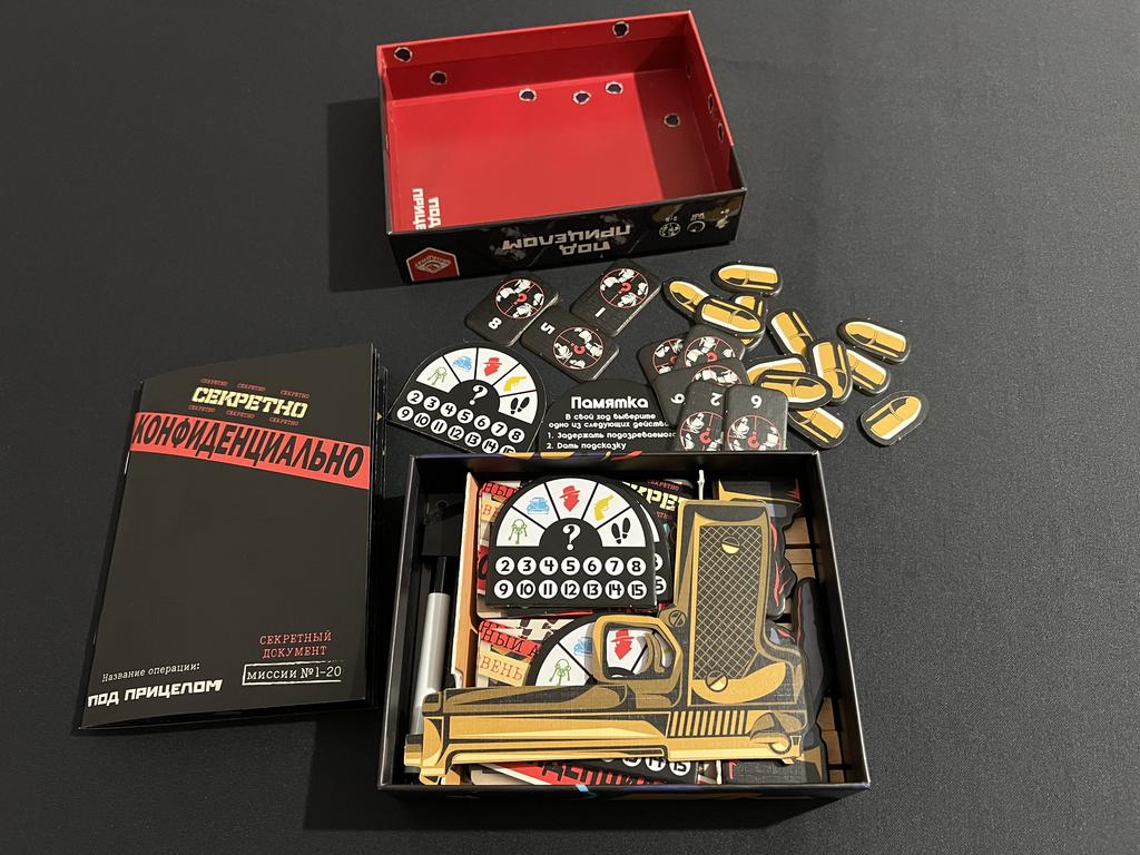 Сначала услышал пару восторженных отзывов: первый - от Никиты и Саши из Рыцарей, второй - хоть убей, сейчас не вспомню от кого. Дальше на хайпе и прекрасном отношении к «Это Бомба», которую мы регулярно проходим с ребятами, я захотел себе что-то подобное на двоих, для дома. Пазл сошёлся - и вот Под прицелом здесь.