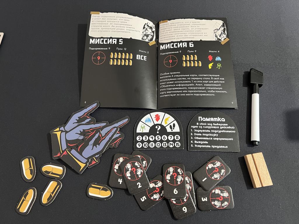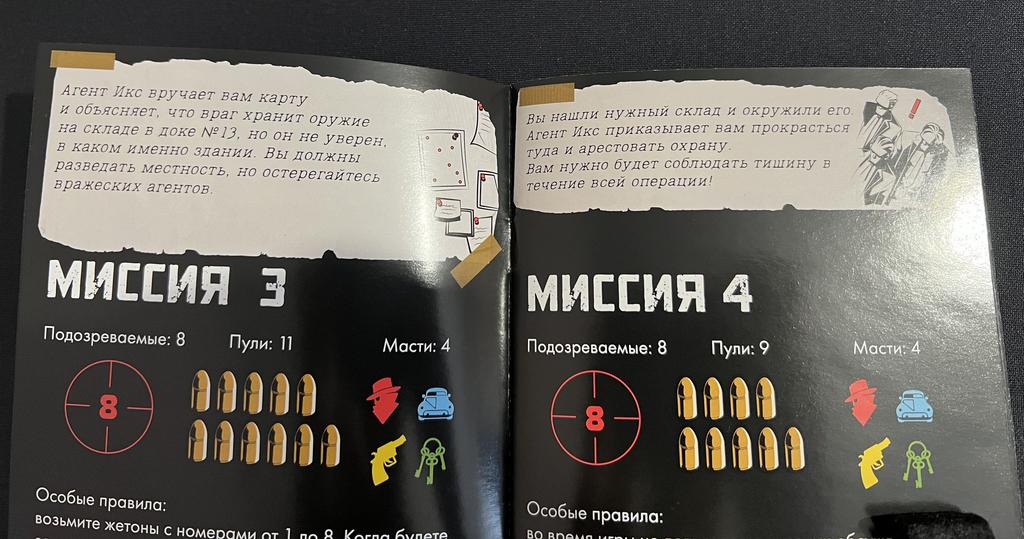 Обе коробки осыпают разнообразием миссий. Здесь бывает, что устранять предателя можно только у игрока справа от себя - тогда каждый начинает играть в игрока справа; бывает, что нужно устранять предателей по порядку их взятия - тогда мы всем отделом работаем в одного игрока, затем в другого; бывает, что для устранения нужно чтобы возле предателя лежало одинаковое количество вертикальных и горизонтальных подсказок...