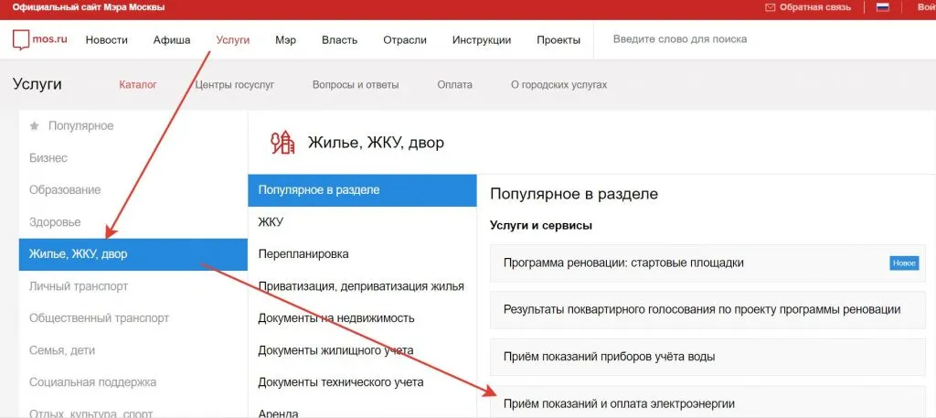 Подача сведений счетчику