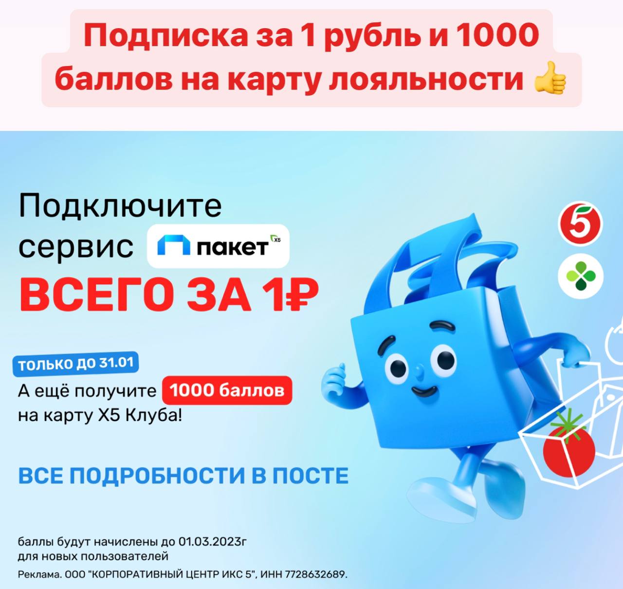 Подарок от пятерочки сервис пакет