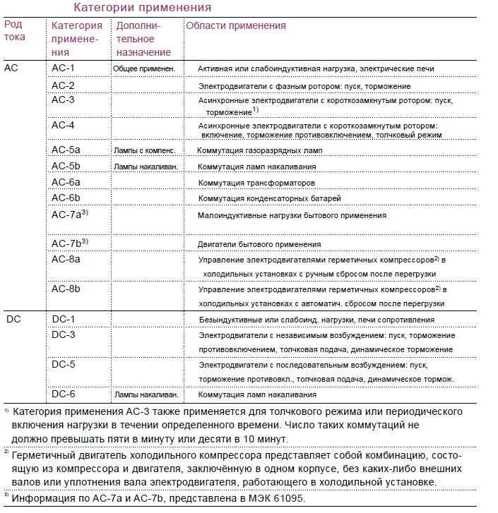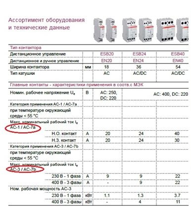 Подбор контактора