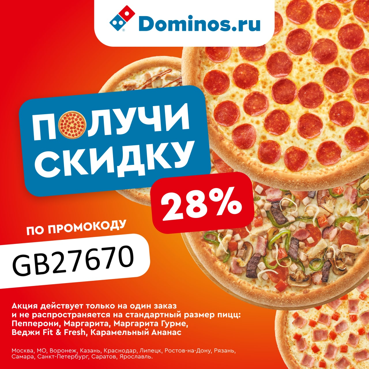 Топовая акция! Получаем скидку 28% Domino's Pizza.