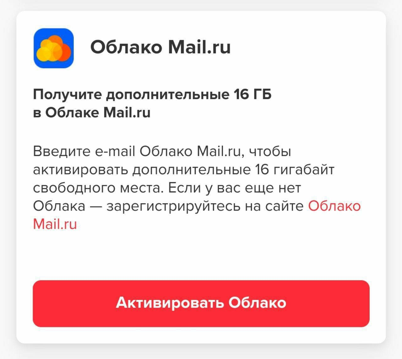 Бесплатно получаем +16 ГБ в облаке Mail ru
