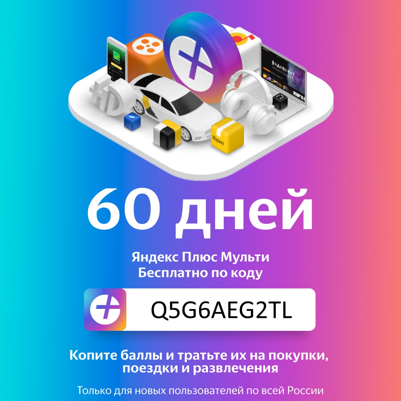 Бесплатно получаем подписку «Яндекс Плюс Мульти» на 2 месяца.