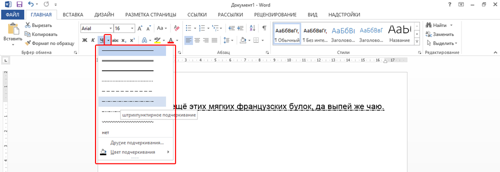 Подчеркивание текста в word