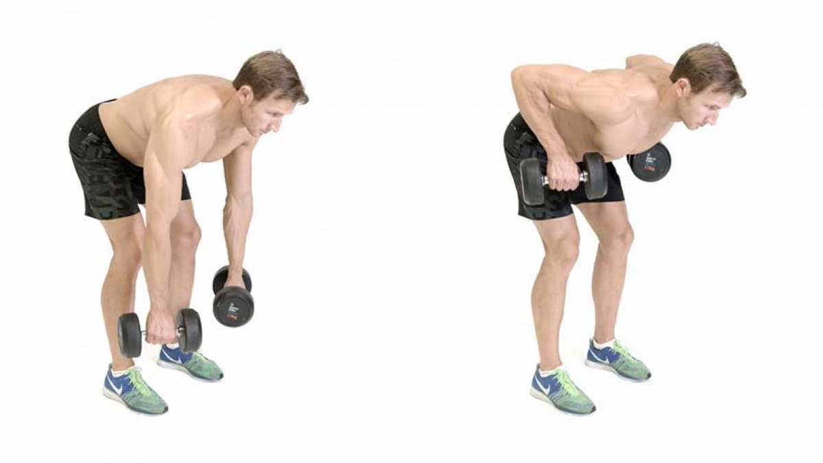 Подъем гантели на спину