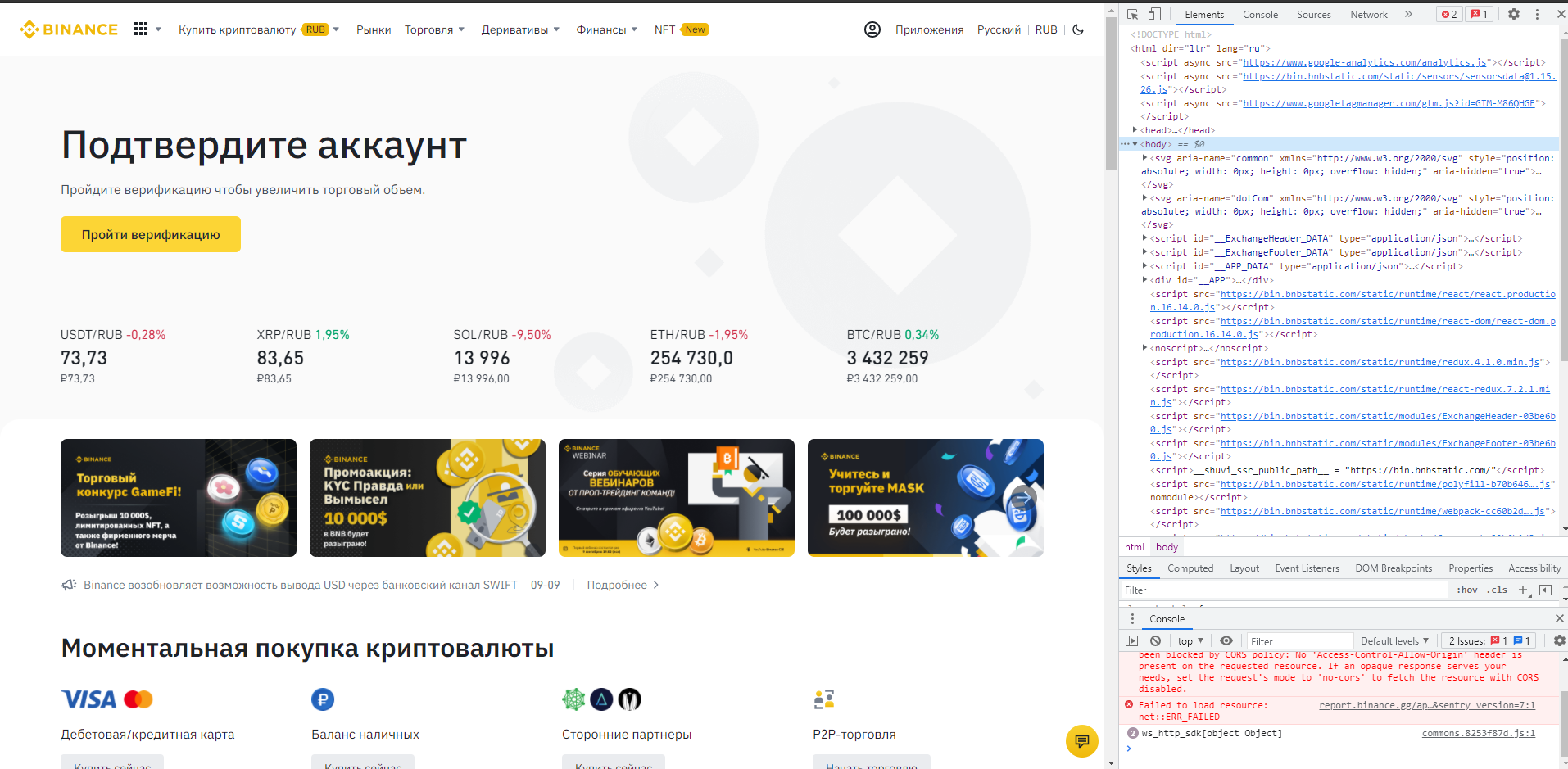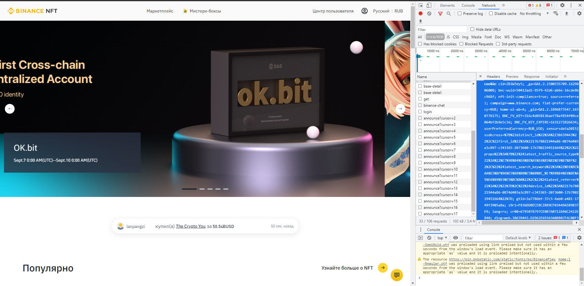 Открываем вкладку с бинанс нфт