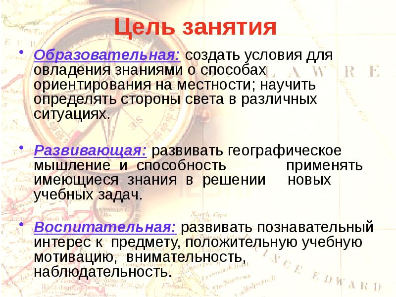 Подготовка к занятию цель