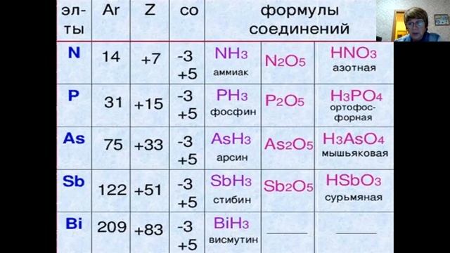 Подгруппа азота таблица