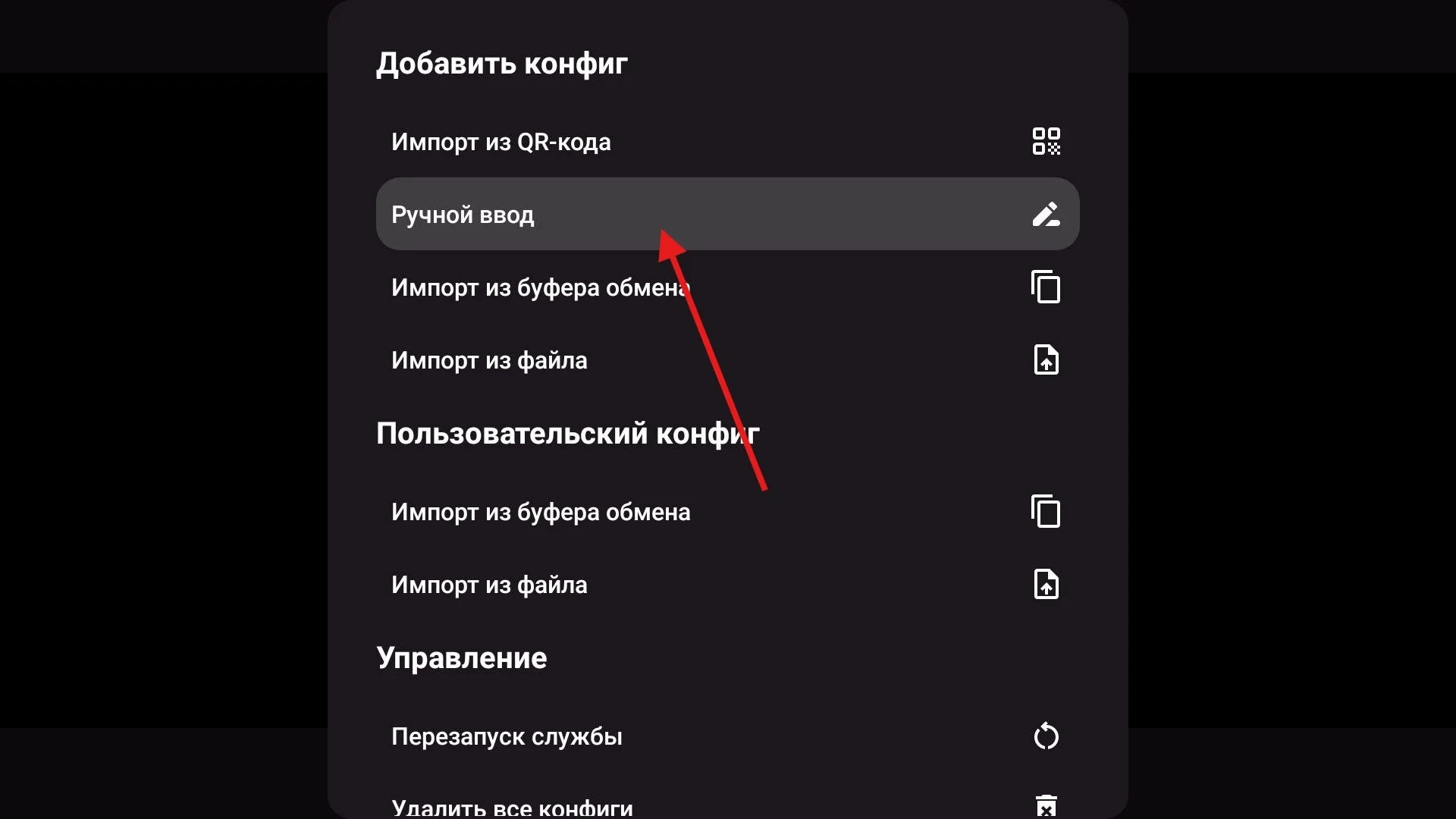 3️⃣ В разделе «Добавить конфиг» выберите пункт «Ручной ввод».