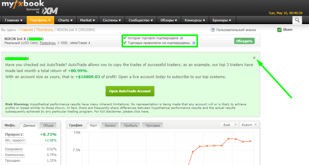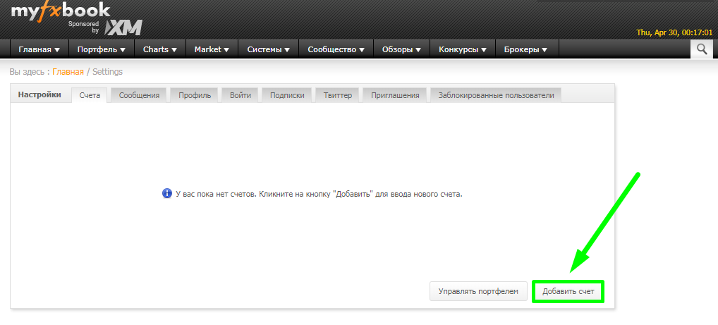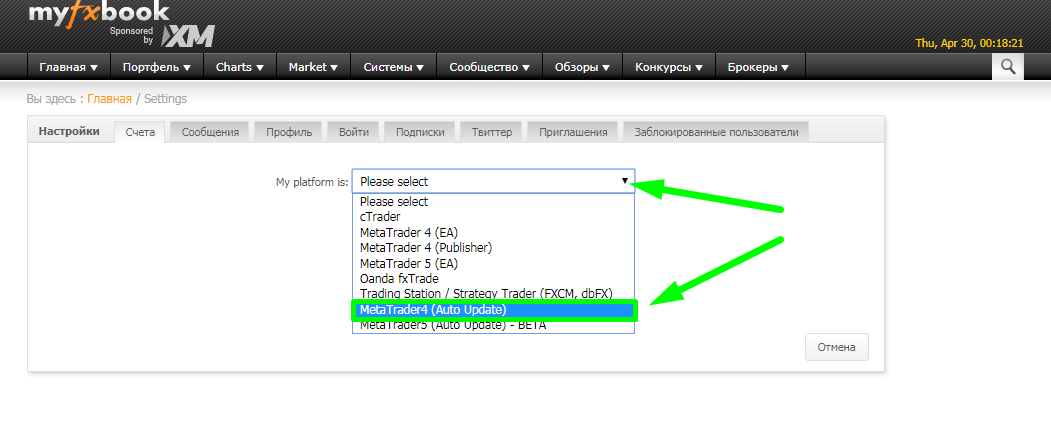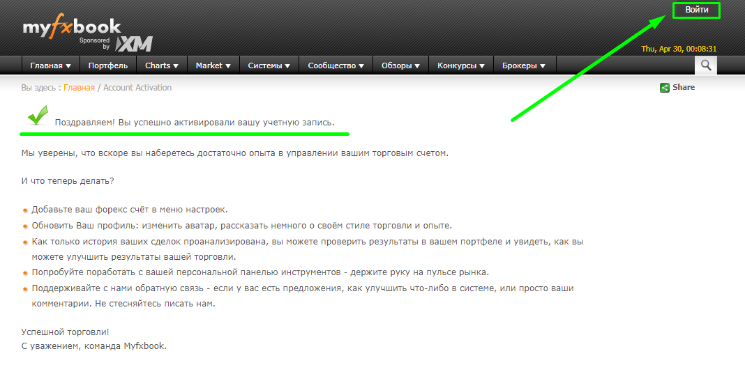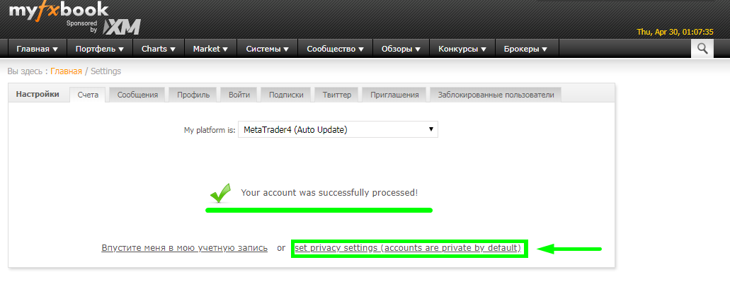 Возвращаетесь на сайт myfxbook