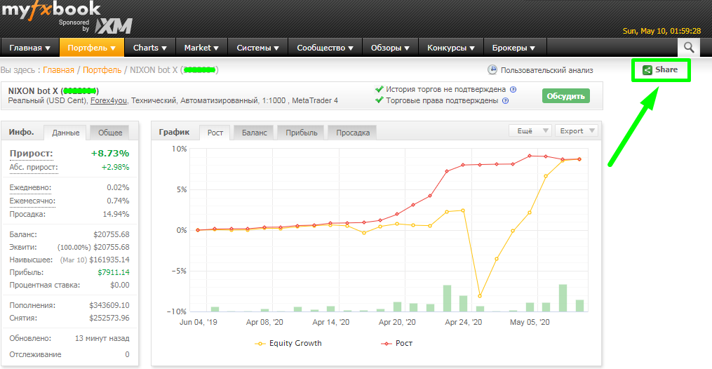 - Это своего рода визитная карточка управляющего счетом. MyFxBook выступает независимой объективной платформой, которая защищает интересы пользователей. Трейдер может сделать страницу торговли общедоступной (передача инвесторского пароля, публичный доступ), где потенциальные инвесторы будут видеть всю статистику без возможности вмешательства в торговлю
